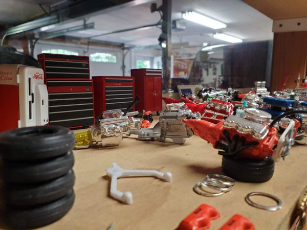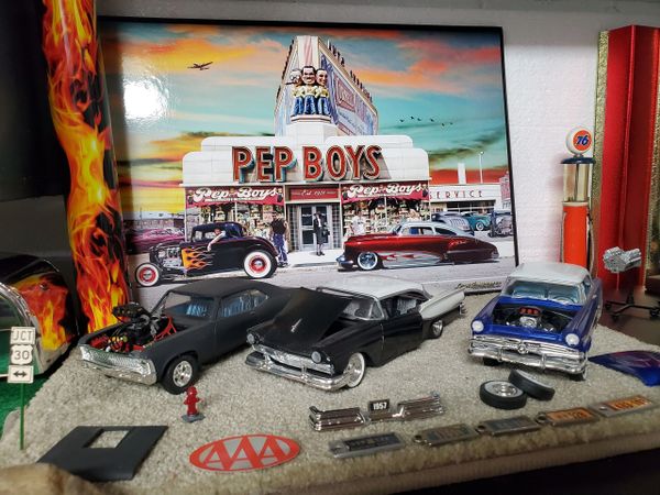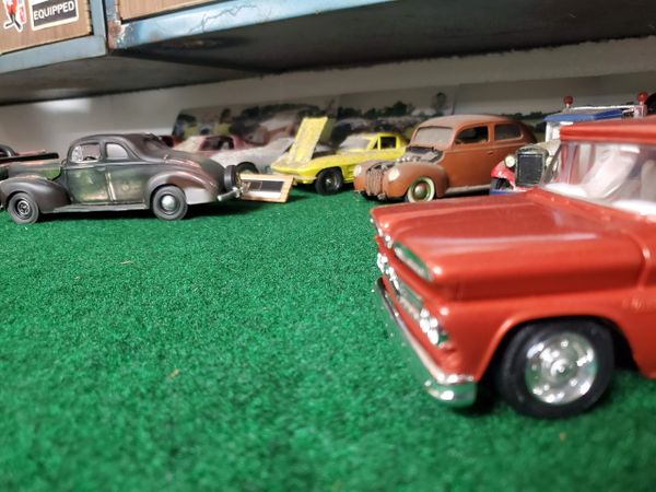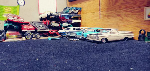 A former resident of Parkside, PA, Charlie grew up with the drive of a car enthusiast. I visited Charlie and met his wife Nancy at their current home in Brookhaven, PA to check out his collection of model cars and come away with some insight into the hobby. As it turned out, Charlie had a very colorful past. His love of plastic model cars began as a child; he would visit Simmonds Hobby Shop in Chester, PA and was quickly engaged in the hobby, entering some local store contests with his work. Right out of High School it was all business as Charlie joined the Air Force. His employment history includes a 50 year retirement back in 2013 from Ed’s Auto Body in Upland, PA.. Charlie revived his love of plastic model cars towards the end of his employment and continues it today.